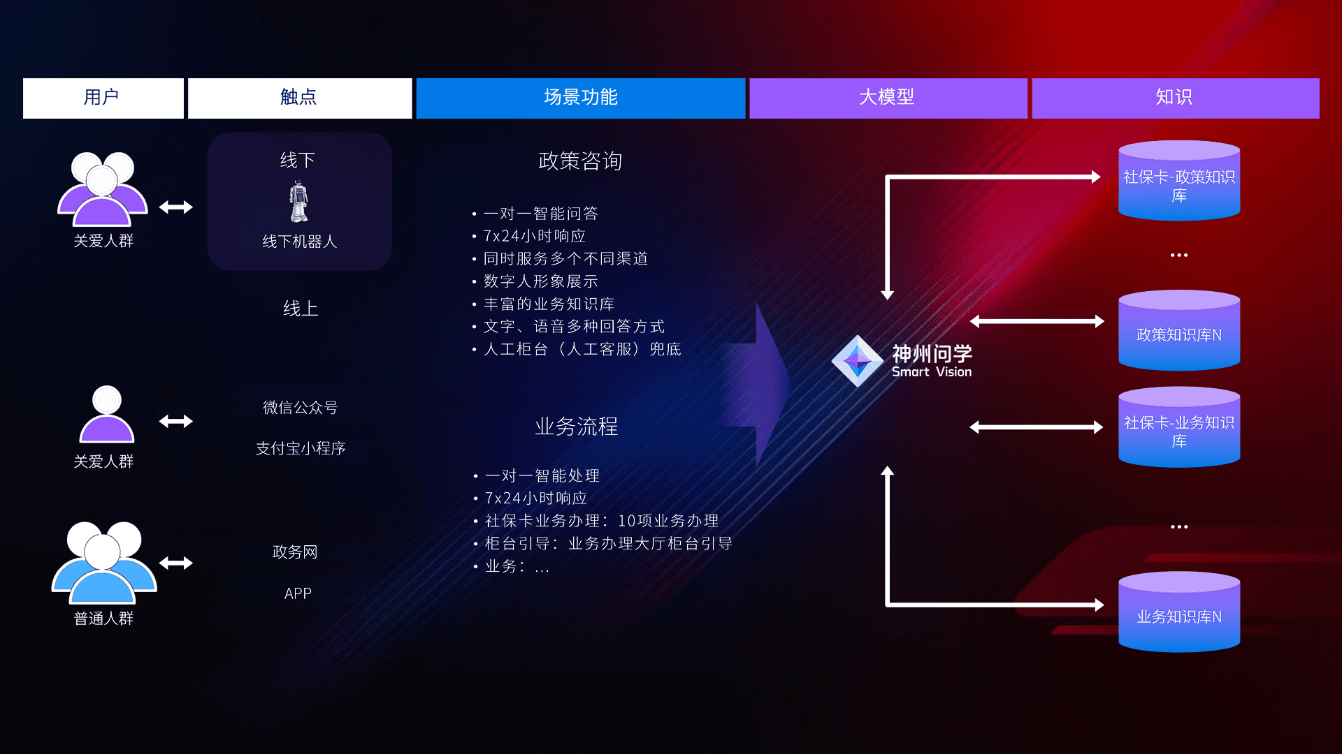 • 线上线下全覆盖:线上提供微信公众号、、、、支付宝小程序、、政务网、、、、app多种渠道,,,,与线下机器人形成完整服务体系。。